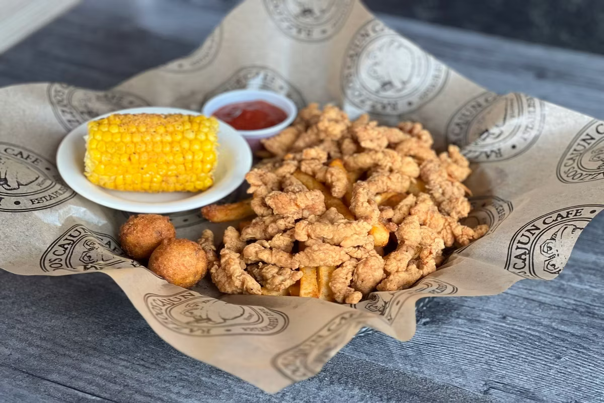 All your favorites. Hand battered and perfectly fried shrimp, fish, and crawfish tails. Served with dipping sauces, fries, hush puppies, and choice of one side.