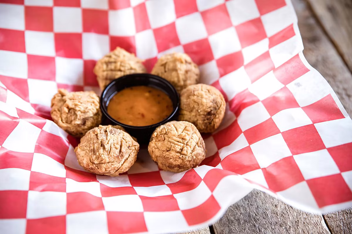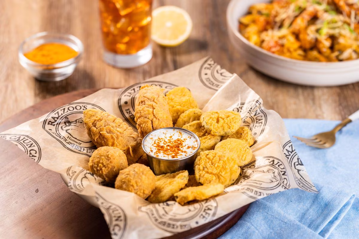 Combination of our fried pickle chips, boudin balls and Rat Toes served with Cajun buttermilk and Bayou Ouch sauce for dipping.