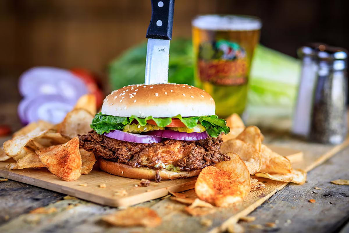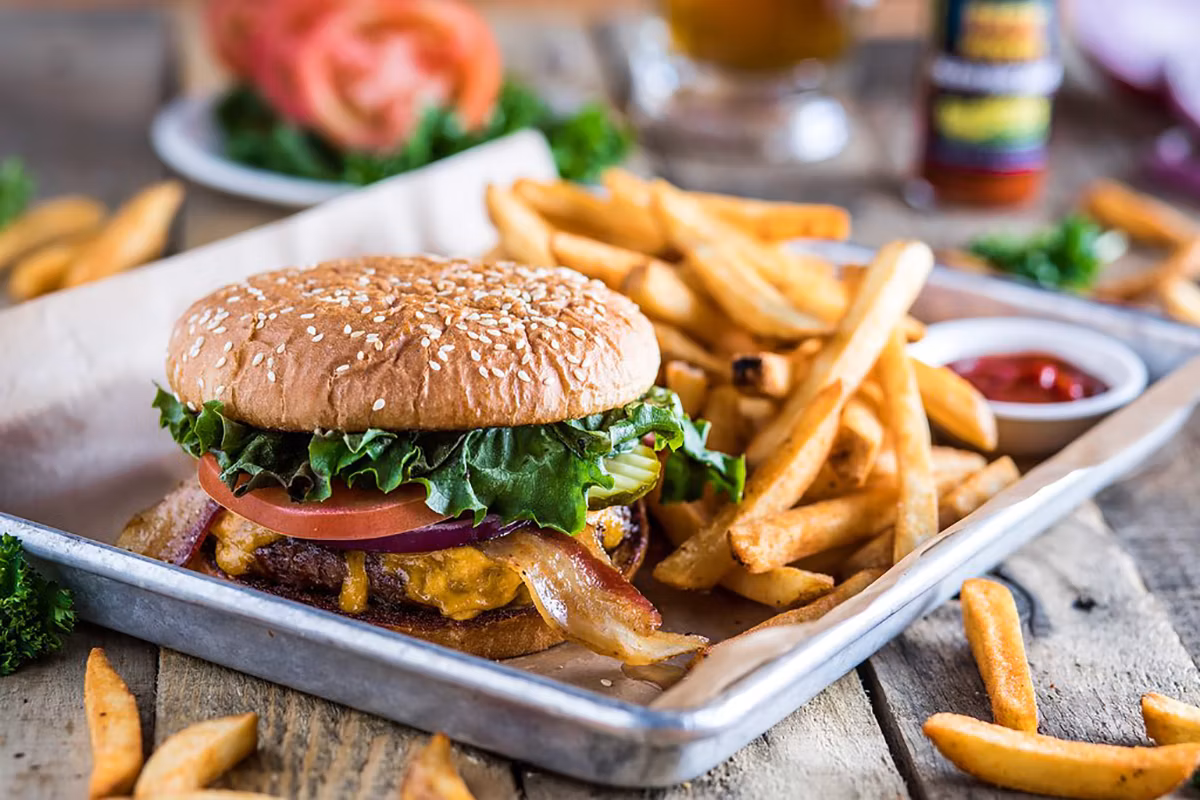 Half-pound patty with smokey sauce, cheese & crispy bacon.