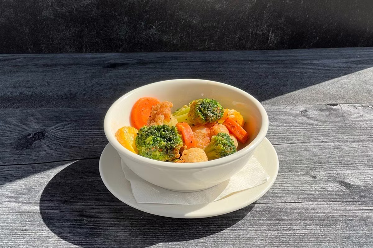 Hand battered and perfectly fried Shrimp and Fish. Served with dipping sauces, fries, hush puppies, and choice of one side.